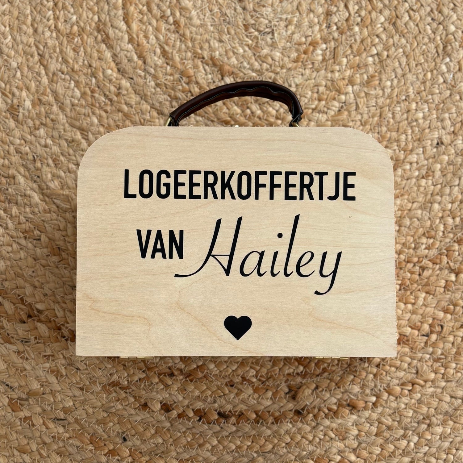 Het perfecte kraamcadeau; een houten kinderkoffertje met tekst naar keuze. Deze koffertjes...