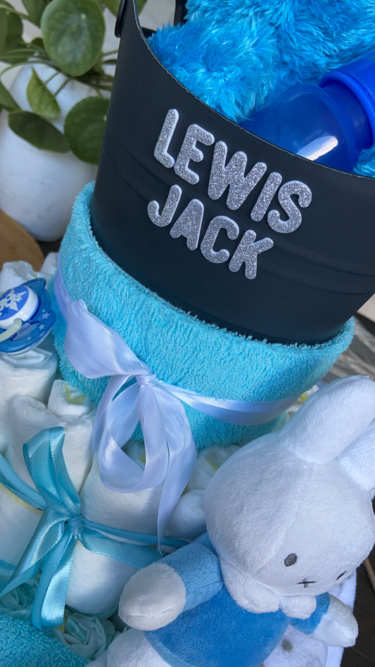 Luiertaarten worden op maat gemaakt. Klik op één van de getoonde luiertaarten en lees in de omschrijving hoe je een luiertaart kunt bestellen.