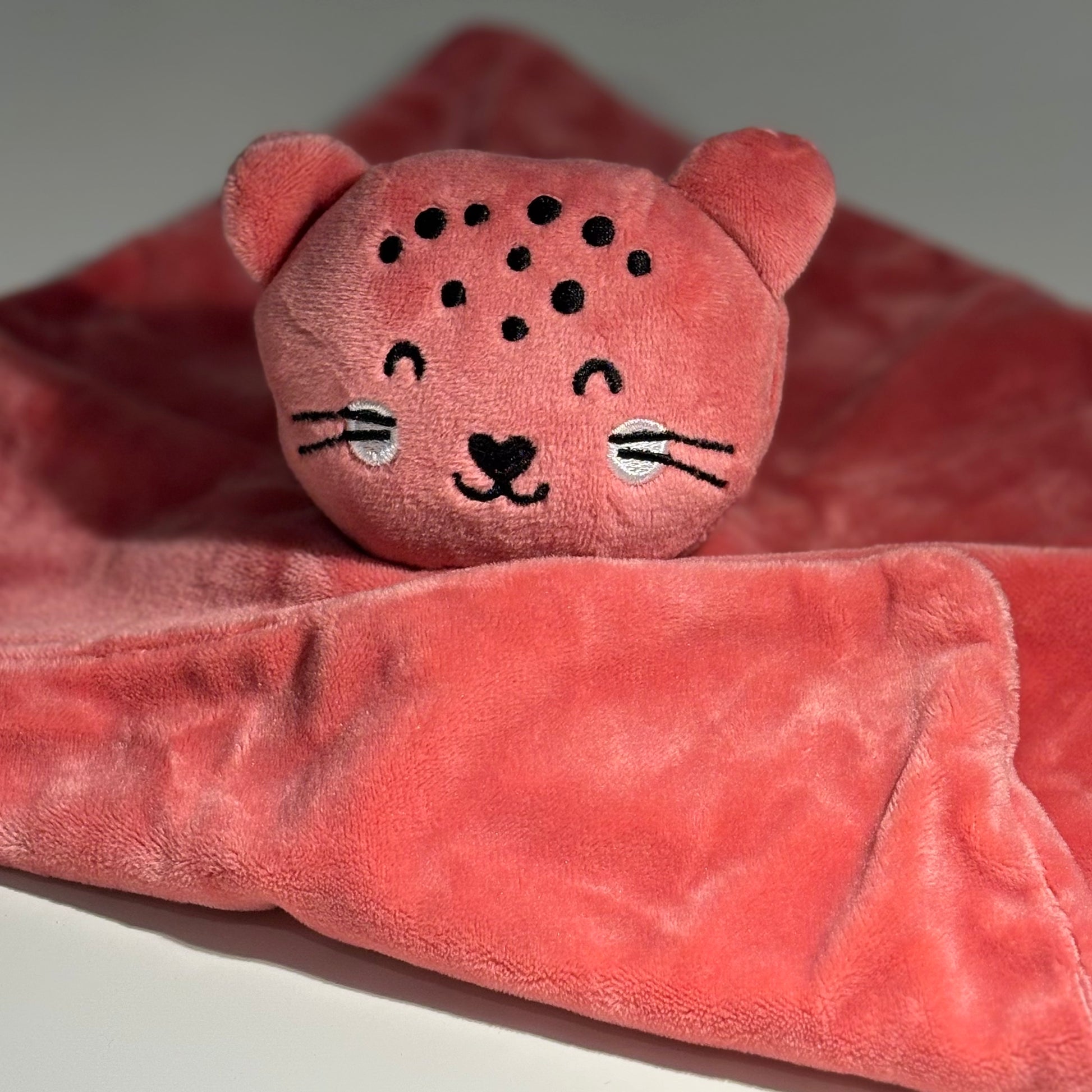 Knuffeldoekje van het merk Bambino in de variant Luipaard. Gemaakt van een zachte stof (100% polyester) en erg fijn om mee te knuffelen.
