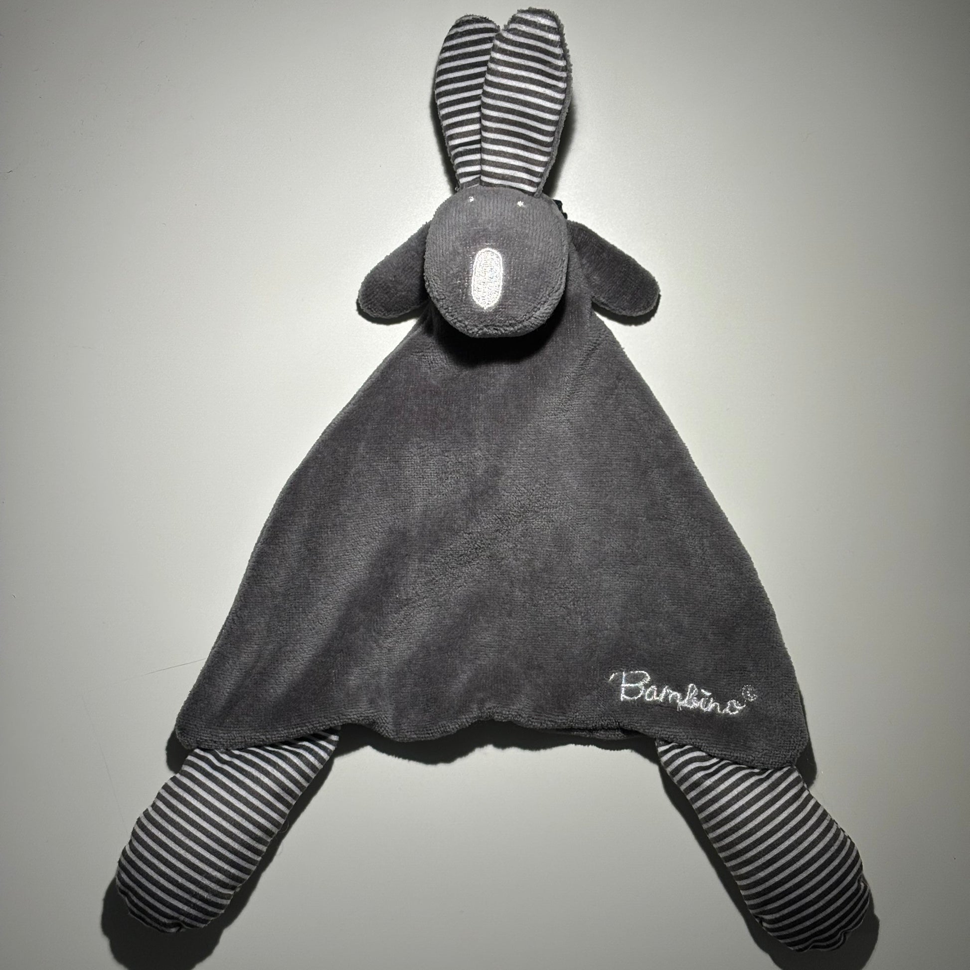 Knuffeldoekje met knisperoren van het merk Bambino in de kleur antraciet. Gemaakt van een zachte stof (100% polyester) en erg fijn om mee te knuffelen.